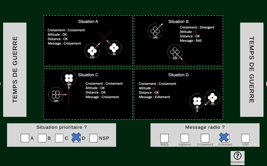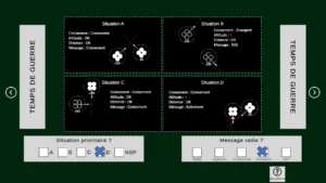 Le test de vaisseau est plus compliqué à Tours il y a bien plus de paramètres dans la partie « radar » avec les vaisseaux alliés/ennemis et les planètes, on a tendance à perdre beaucoup plus de temps que sur le site car il y a très peu de planches avec une réponse évidente qui saute instantanément aux yeux mais globalement le test présent à l’entraînement est clairement une bonne initiation de l’épreuve de Tours et l’interface est la même.
