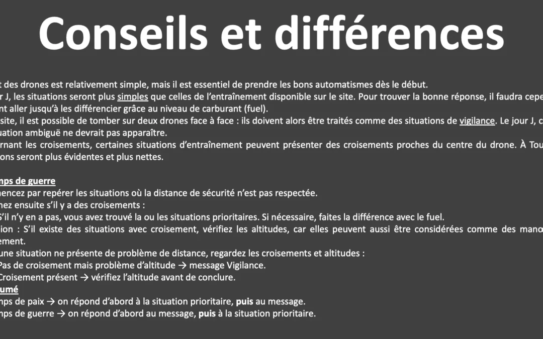 En ce qui concerne le CSO, no souci, c’est exactement comme décrit sur le site. Par contre, à Tours, je trouve que les maths étaient un peu plus costauds, genre trois étapes de calcul minimum à chaque fois. Pour ce qui est des cadrans et orientation, c’était nickel. Le test des drones et les vaisseaux, pareil, faut juste garder l’esprit ouvert sur place. Pour le T3A, c’est la meme chose. Attention à ceux qui s’entraine sur PC portable comme moi, le clavier est limité au pavé numérique et aux flèches, je recommande de s’entrainement sur un vrai clavier.