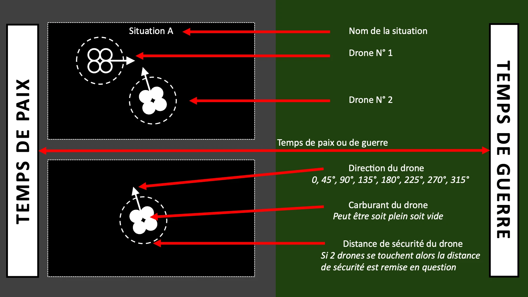 Les drones pareil, les trajectoires sont moins ambiguës le jour J.