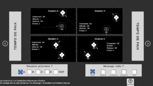 Le test de vaisseau est plus compliqué à Tours il y a bien plus de paramètres dans la partie « radar » avec les vaisseaux alliés/ennemis et les planètes, on a tendance à perdre beaucoup plus de temps que sur le site car il y a très peu de planches avec une réponse évidente qui saute instantanément aux yeux mais globalement le test présent à l’entraînement est clairement une bonne initiation de l’épreuve de Tours et l’interface est la même.